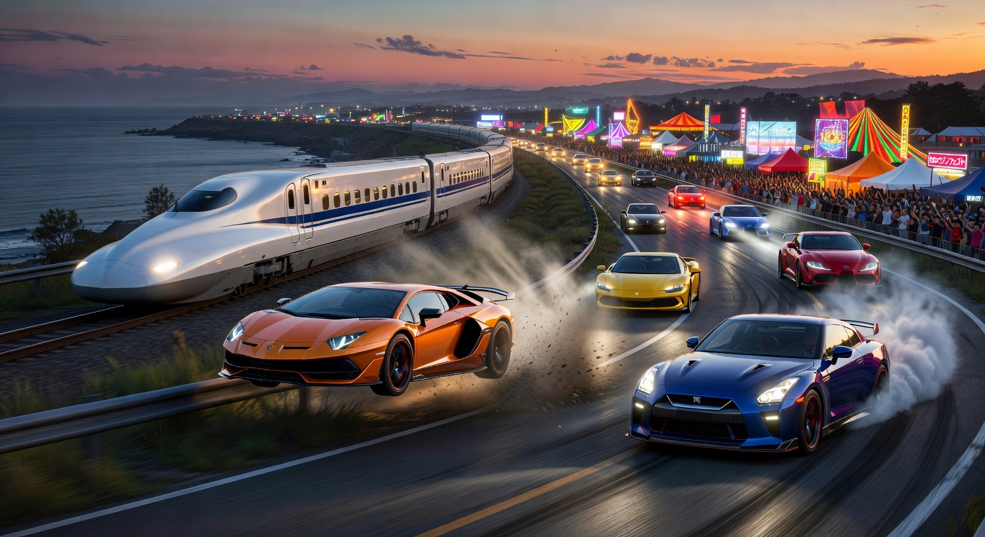 Forza Horizon 6's prologue gameplay explodes onto YouTube with a bullet train chase. Epic jumps and stunts spotlight star cars in Japan's Horizon Festival. Early access previews fuel launch hype.